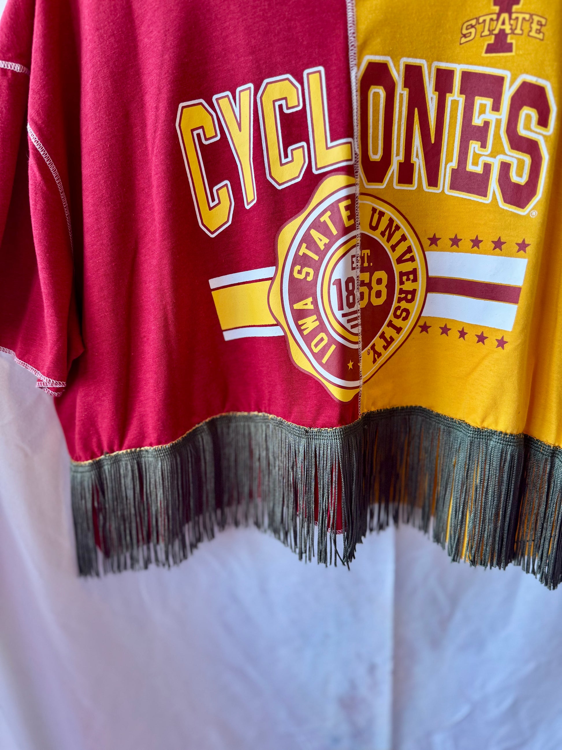 Iowa State University Cyclones cropped tee with military green fringe